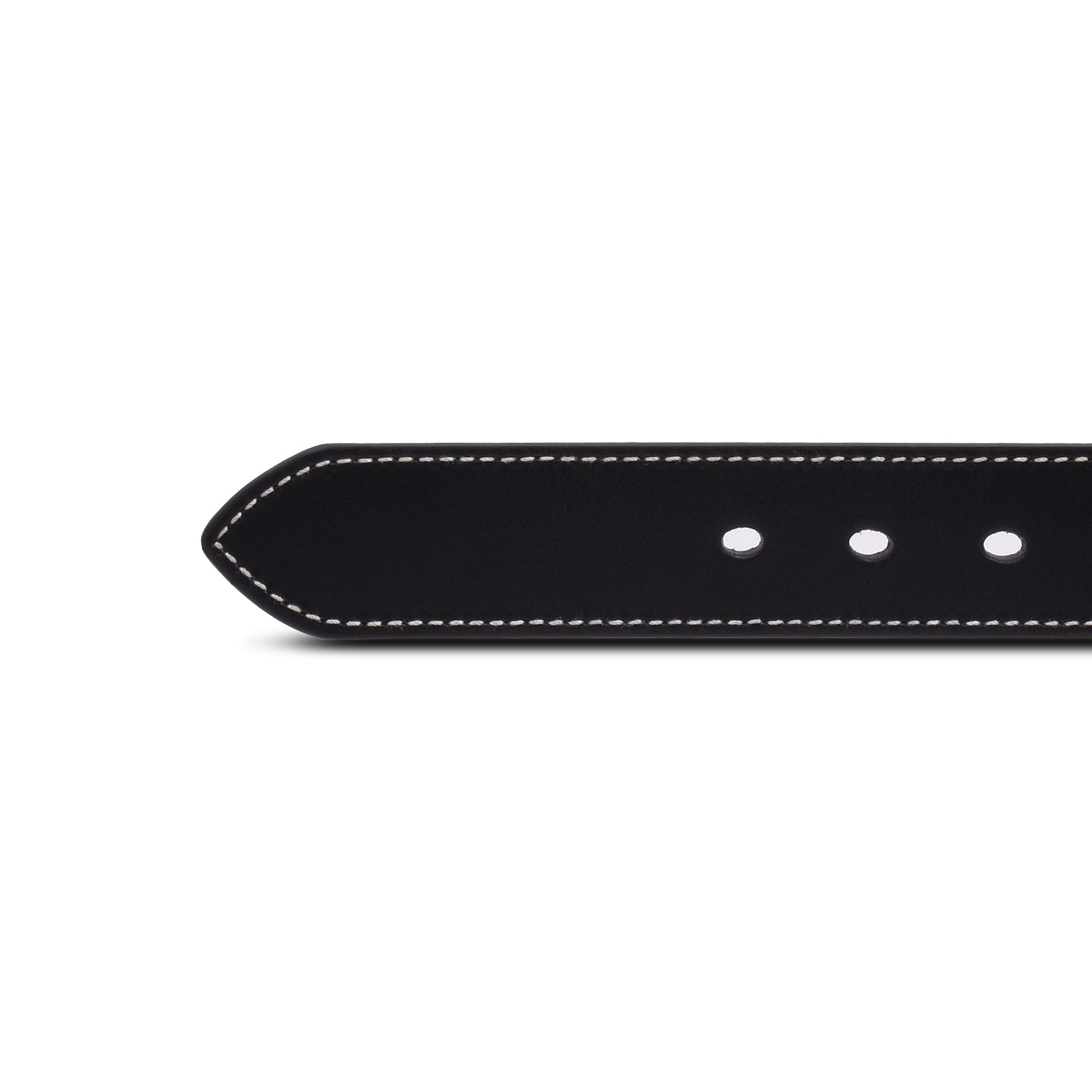 The perfect belt for your favorite business casual or formal wear. This premium belt features a sleek black finish with bold white stitching for a modern, refined look. Pair it with jeans to dress up your favorite western look or wear it to your next big business meeting!