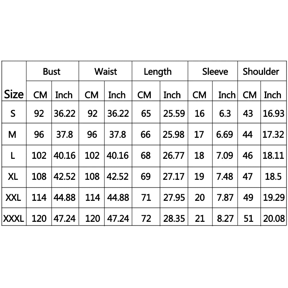 | Size | Shoulder(inch) | Bust(inch) | Length(inch) | Waist(inch) | Sleeve(inch) |