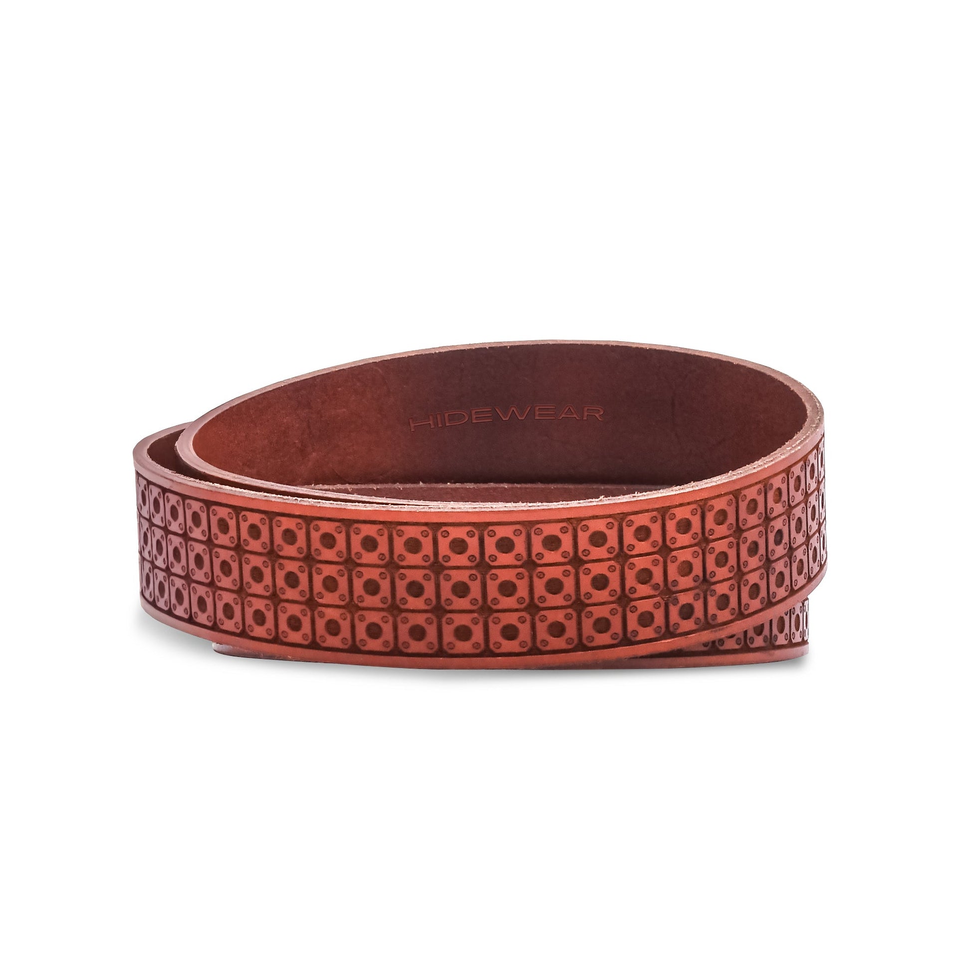 Add refined charm to any outfit with the Italian Squares Dress Belt. Crafted from premium Italian leather with a laser-etched square pattern and antique copper buckle, it blends timeless style and quality in a warm brown finish.